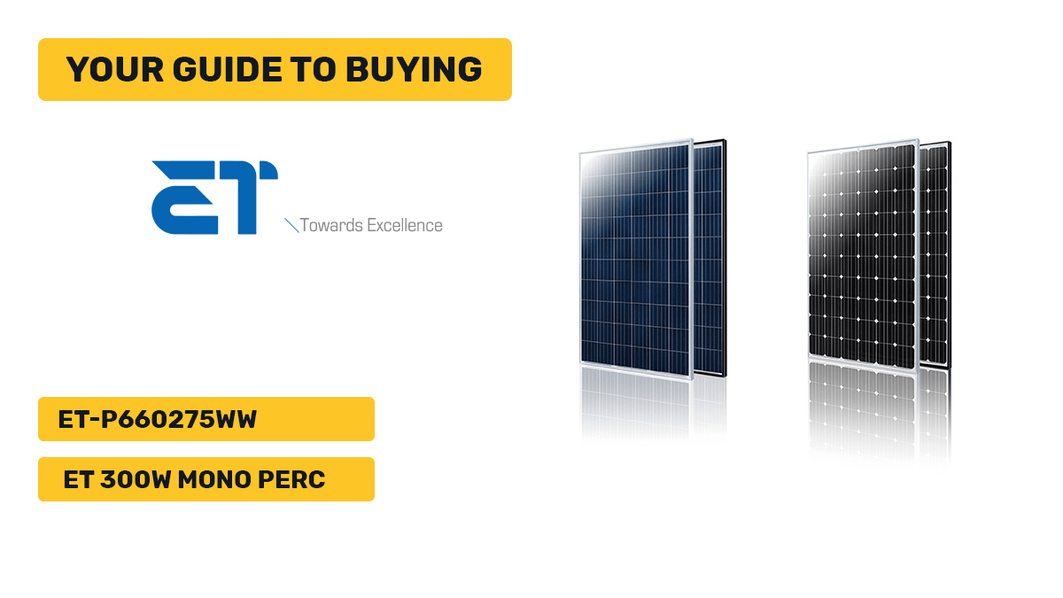 Mono Perc Panel is better suited to Australian conditions than a “Poly” Panel because we get very cold temperatures in Winter and very hot temperatures in Summer. If you need a panel that works in the heat of summer and the cold of winter consider an ET 300W Mono Perc.